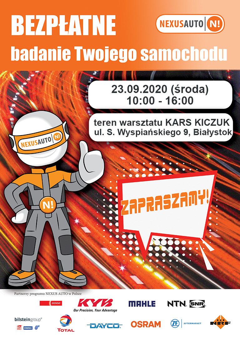 1. 23 września: przy warsztacie samochodowym KARS KICZUK, ul. S. Wyspiańskiego 9, Białystok, godz. 10.00-16.00,