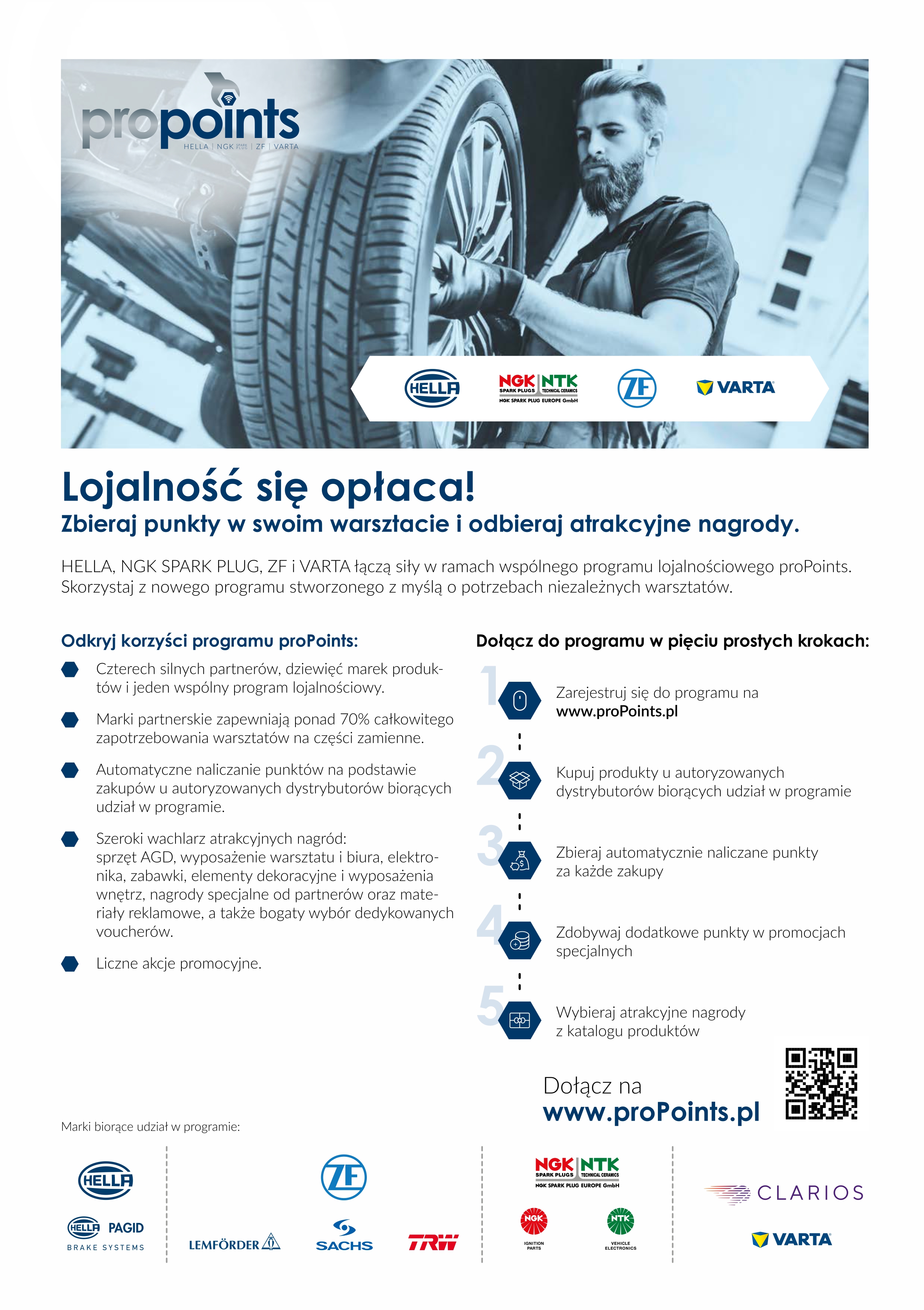 Nowy program proPoints skierowany jest do niezależnych warsztatów samochodowych, zaopatrujących się w produkty marek partnerskich programu: HELLA, HELLA Pagid, NGK, NTK, SACHS, LEMFÖRDER, TRW, ZF i VARTA. Zarejestrowani uczestnicy będą mieć możliwość zbierania punktów za zakup produktów z oferty partnerów u dystrybutorów biorących udział w programie.